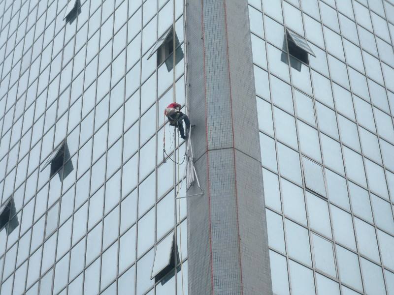吊板方式是用吊繩、吊板將人吊到工作位置進(jìn)行清洗。這種聲式比較簡(jiǎn)單,成本也低,只要工人身體素質(zhì)好、繩子連接牢固就可以進(jìn)行,一般的大樓都可以用這種方式進(jìn)行清洗,但是這種方式的操作必須使安全措施到位,否則危險(xiǎn)性很大,造成傷亡事故的都是因安全措施不到位造成的。擦窗使用使用升降設(shè)備。